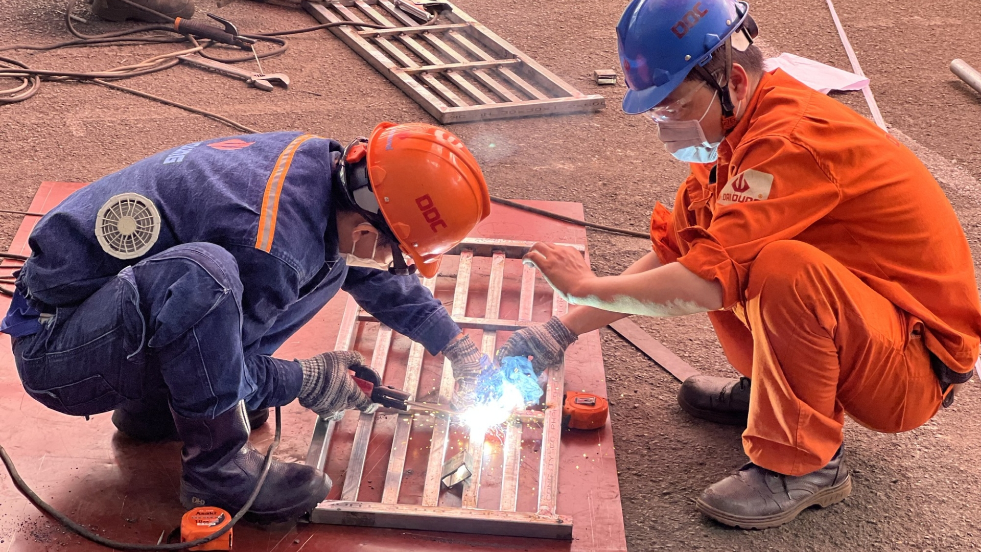Đo đạc hiện trường, hàn lắp, sơn chống trượt.