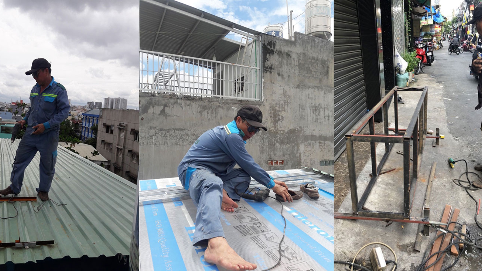 Đo kích thước, cắt tôn, vít cố định, bịt kín khe.