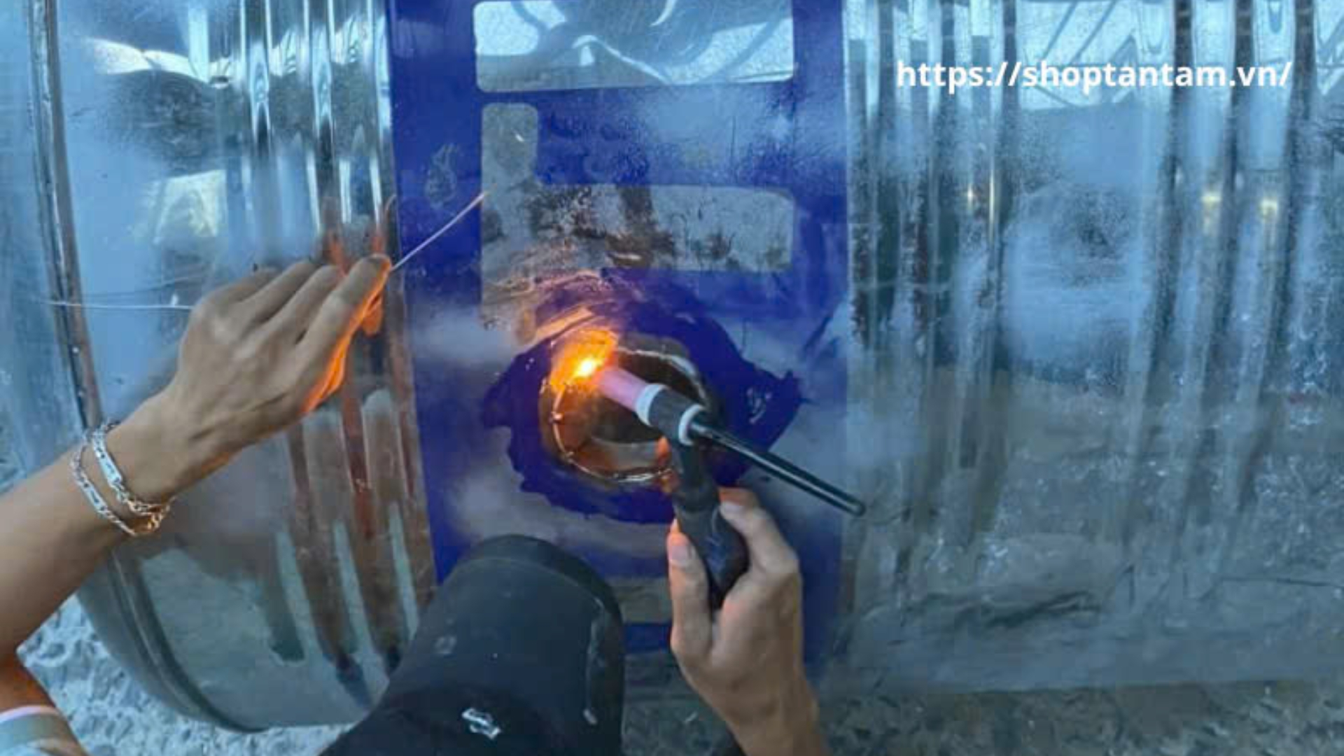 Làm sạch inox bằng axit nhẹ, hàn TIG cho mối mịn. Đánh bóng bề mặt, lắp đặt chính xác.